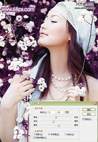 3、新建一層,蓋印圖層,簡單的銳化一下,再進行色彩平衡,參數和效果如圖: