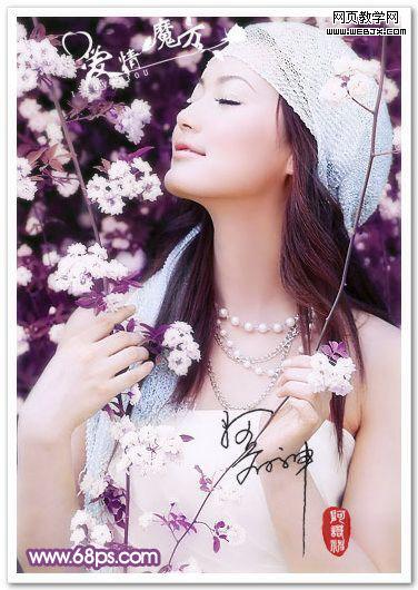 5、最后高斯模糊一下,添加上蒙板,用黑色畫筆將人物部分擦出。打上文字,加上邊框,最終效果如圖: