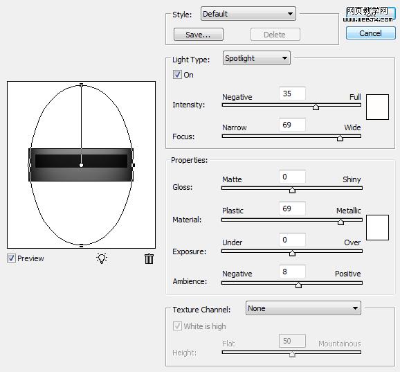 第7步:然后在次選擇濾鏡>渲染>光照效果,樣式:默認值,光照類型:點光