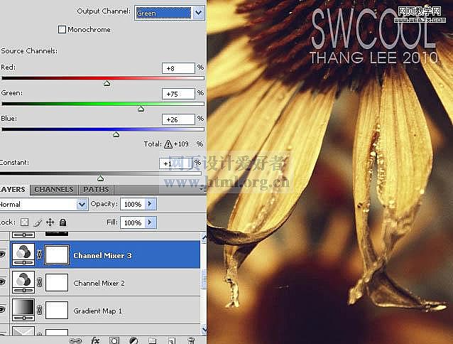 本教程介紹古典暖色圖片調色方法。作者調色以通道混合器調色為主,雖然很少用到,不過調色還是非常快捷的。色彩調好后海需要用濾鏡等加上一些簡單的雜色,增強圖片的古典韻味。