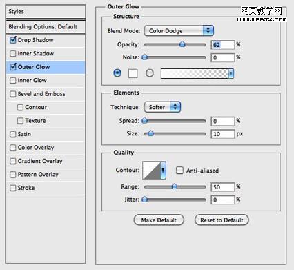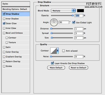 5、選擇光點層(燈泡層),進入 “圖層>圖層樣式>投影。使用下面的值。 |
