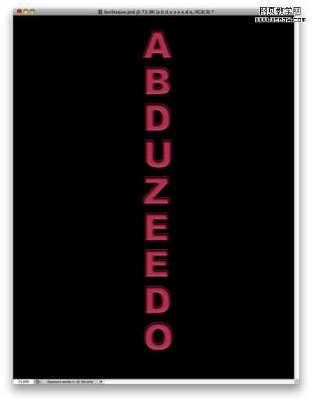 15、現在復制文本,并關閉所有的特效,給一個高斯模糊效果,這樣做為的是能讓文字發出淡淡的粉紅光線,看下圖。 |