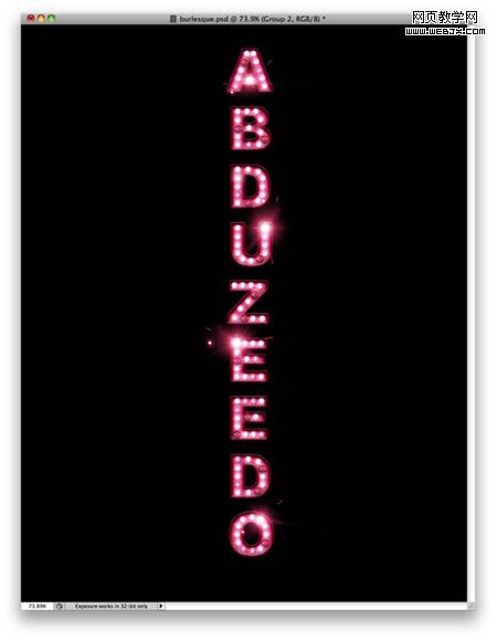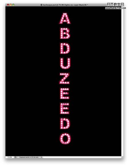 11、每個字母里都有壞掉的燈泡,我們按照下圖位置復制粘貼這些壞掉的燈泡(光點),然后把它們合并為一個層。 |