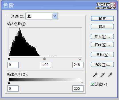10、載入“暗部”選區,添加“色階”調整圖層,按照設置參數調整人物頭發顏色,使之與周圍環境光融合。如圖所示: