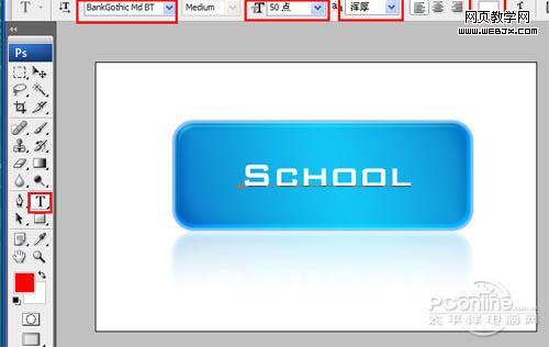 5、單擊工具箱中的橫排文字工具 ,輸入school,然后在工具選項欄上設置字體參考圖12,如圖12所示。