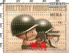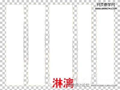 選擇矩形選框工具,在圖中畫出五個橫向的矩形選框,使矩形的短邊對齊到參考線上,注意這幾個矩形的間距要錯落開,不要一樣,矩形間的距離,就是將來紙條間距,如果想讓它緊密一些,不妨把間距設的窄一些。將選區存為通道,將通道命名為H,取消選擇。