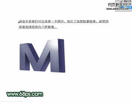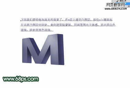 6、下面我們要給文字加高光效果。在M層上面新建一個圖層,按住Alt鍵鼠標點擊兩個圖層中間處,來創建剪貼蒙版。用白色畫筆涂抹高光位置,效果如下圖。
