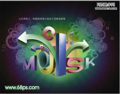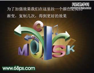 本教程效果圖構成元素較多,不過制作原理基本相同。就是把文字或圖形立體化。大致過程:先把文字或圖形適當變形做出透視感,然后再復制一層做出立體面,最后渲染高光和質感即可。