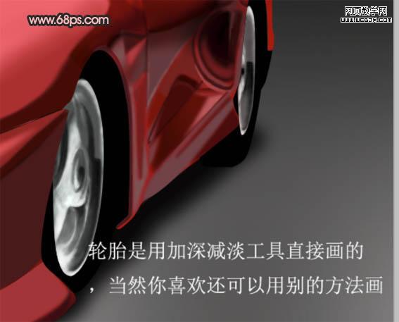 6、輪胎是用加深,減淡工具直接畫的,當(dāng)然可以用自己喜歡的方法畫。