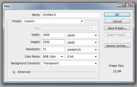 26、打開Photoshop,去文件>新建,創建一個72dpi的1600 × 2300像素,RGB色彩模式的新文件。