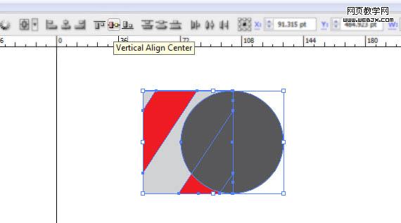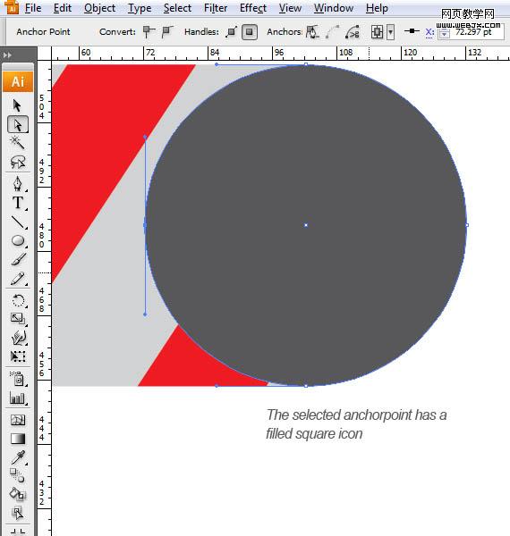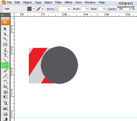 15、選擇這兩個形狀,對齊它們的水平軸。按CTRL點擊附近的區域取消,然后使用直接選擇工具(A),選擇圓圈的左側錨點,點擊刪除。
