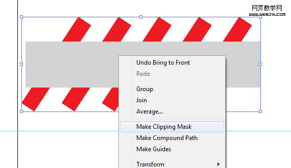 8、刪除其填充,選擇所有的紅色長方形,右鍵單擊>建立剪貼蒙版。選擇所有物件(按Ctrl + A),點擊合并按鈕。然后把合并后的圖形副本粘貼到前方(CTRL + C > Ctrl + F)。 使用橡皮擦工具(Shift + E),按住Alt鍵擦除左側紅色條紋的部分。