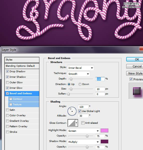 29、創建一個新層(Ctrl + Shift + N),混合模式設置為正片疊底,使用畫筆工具(B),設置硬度為0%,刪除畫筆面板其他額外的設置,涂抹一些陰影給它一個更棒的立體效果。使用暗紫色。