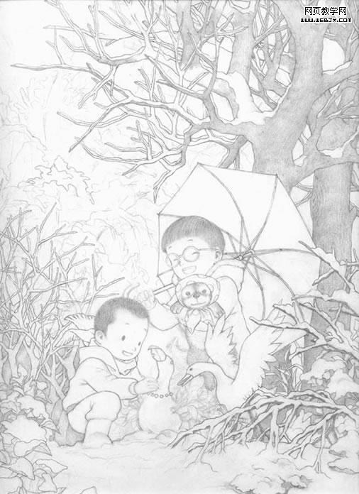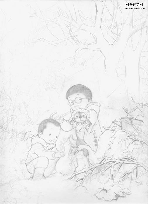7、線稿成型后鋪上大致的調子,終于,鉛筆稿完成了!