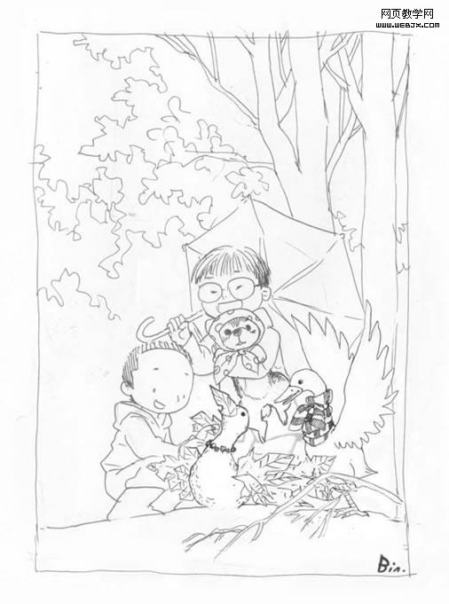 本教程更多的是介紹如何自己創作一幅原創的繪畫作品。這可能需要較深的美術功底和創意思維。繪畫之前先構思好需要表現的內容,然后畫出線稿,再上色即可。