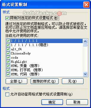 在圖三對(duì)話框的下方,你可以看到一個(gè)“允許自動(dòng)套用格式替代格式設(shè)置限制”選項(xiàng),最好不要選中它。
