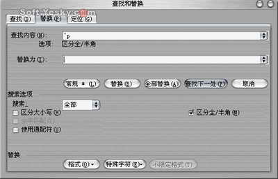 筆者發現,在應該有段落標記的地方,都有段落開頭的空ge,看來突破口就在這里了,我們將空白字符替換成段落標記。再次打開“查找和替換”對話框,在“查找一處”輸入“^w”,即“空白字符”,而在“替換為”處輸入段落標記(即^P),然后點擊“全部替換”,就可以得到我們想要的結果了。