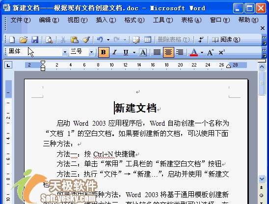 啟動(dòng)Word 2003應(yīng)用程序后,Word自動(dòng)創(chuàng)建一個(gè)名稱為“文檔1”的空白文檔。如果要?jiǎng)?chuàng)建新的文檔,可以使用下面三種方法: