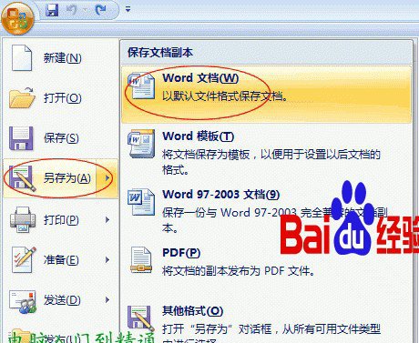 word2007文檔加密方法二打開文檔,同樣【Office按鈕】,然后選擇【另存為】,然后在保存文檔副本中選擇【Word文檔】;