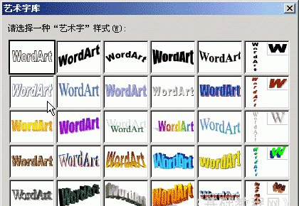 2)點菜單“插入-圖片-藝術字”命令 ,出現一個藝術字樣式的對話框;