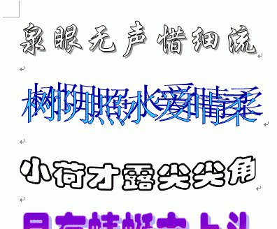 5)再在最后按兩下回車鍵,插入藝術字,樣式選擇第一排的第5個,文字輸入“小荷才露尖尖角”,字體選擇“華文彩云”;