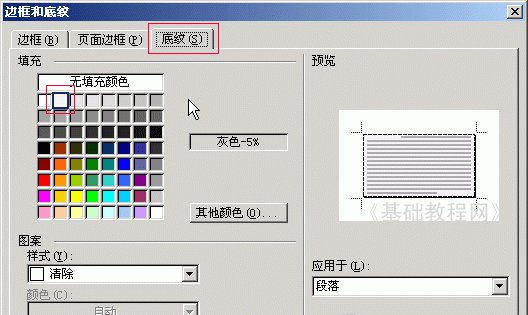 1)保持第二段選中狀態(tài),點擊菜單“格式-邊框和底紋”,在出來的對話框中,選擇上邊的第三個標(biāo)簽“底紋”;