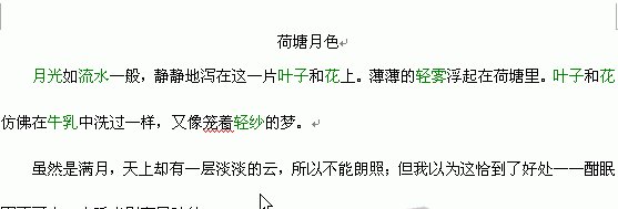 1)選中標(biāo)題“荷塘月色”文字部分,后面的拐彎箭頭別選,單擊菜單“格式-邊框和底紋”,出來一個對話框;