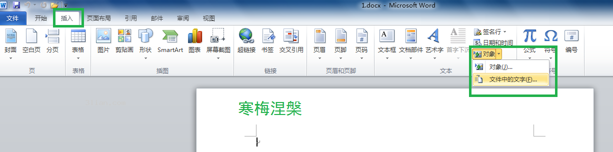借助word2010/2007“插入”選項卡,也可以巧妙地實現文檔的合并。