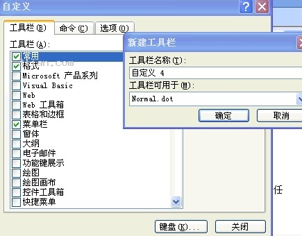 2.在彈出的“自定義”窗口中的“工具欄”右邊單擊“新建”按鈕,然后“工具欄名稱(chēng)”可以任意填寫(xiě)下,單擊確定;