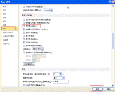 第二步:選擇“高級”,找到“顯示文檔內容”,將“顯示圖片框”前面的勾取消即可。