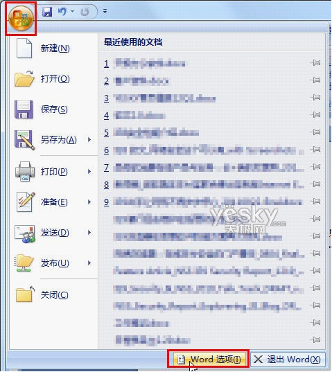依次單擊Word2007界面左上角的圓形“Office按鈕”—“Word選項”按鈕,如下圖所示。