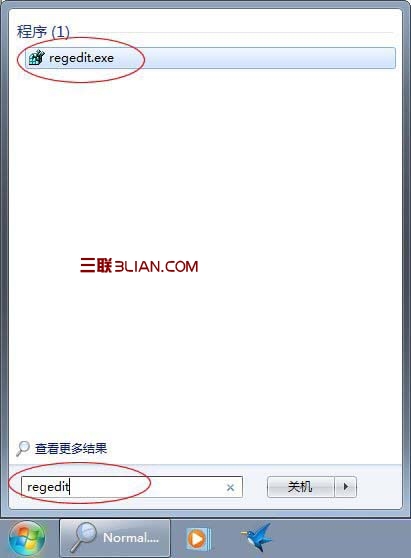 方法二:打開系統左下方的“開始”按鈕,在“搜索程序和文件”中輸入“Regedit”,然后選擇“Regedit.exe”進入注冊表;
