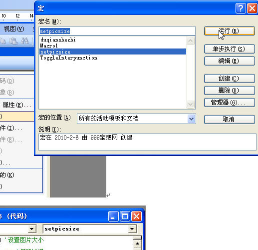 4. 保存,返回你要統(tǒng)一圖片大小的 Word 文檔。運(yùn)行“工具”-“宏”-"宏命令"。