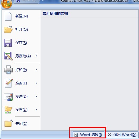 1. 如下圖,點擊左側(cè) offic 徽標,在彈出菜單的右下角打開 “word 選項”