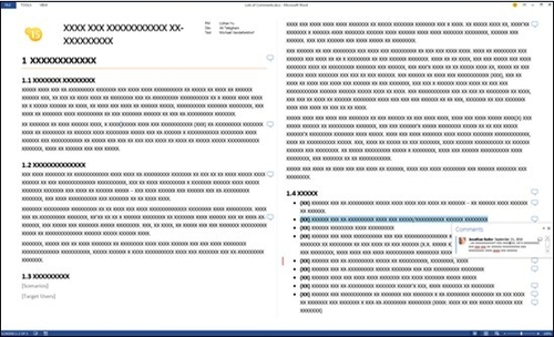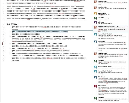 用戶在Word的閱讀模式下瀏覽注釋,新版Word將不會在右邊顯示相關的注釋內(nèi)容,而是最大限度的保證閱讀的連貫性,當鼠標移到注釋內(nèi)容上就會以浮動窗體的形式顯示出來,可追蹤整篇文檔的修改注釋位置,而且在跳出的浮動窗體上通過留言和其他文檔分享者進行溝通交流。