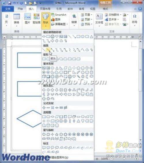 在Word2010文檔中,利用自選圖形庫提供的豐富的流程圖形狀和連接符可以制作各種用途的流程圖,制作步驟如下所述:
