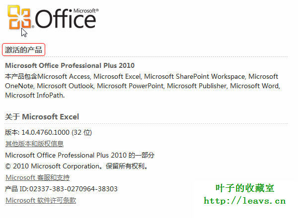 本人以撥打第一個電話號碼為例,接通后按提示先摁1(普通話服務),然后是2(office產品),然后按提示分別輸入9組數字,等待回復激活 ID(8組數字),收到并記下激活ID,并依次輸入,點下一步,變提示完成了激活。這時可以打開菜單中的“文件——幫助”頁面,可以看到激活情況: