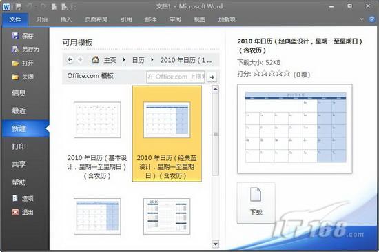 第三步:打開“2010年日歷”模板后,窗口中列出五種2010年日歷模板供大家選擇使用,用鼠標(biāo)選中任意一種模板,窗口右側(cè)會顯示該模板的效果預(yù)覽(如圖3),找到自己喜歡的模板,單擊“下載”按鈕,系統(tǒng)開始從官方網(wǎng)站下載日歷模板(如圖4)。