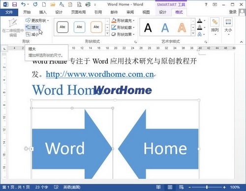 在“形狀”分組中單擊“增大”或“減小”按鈕可以增大或減小形狀,同時減小或增大其他形狀,以保持SmartArt圖形整體大小保持不變,同時各個形狀之間的位置關系也不會發生變化,如圖3所示。