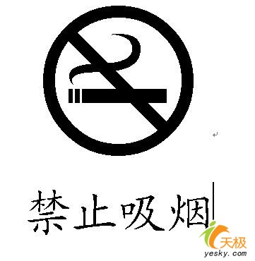 2、在文檔中選定插入的“禁止吸煙”標志,調整其大小顏色等,將字號設置為200以上,然后在標志下面輸入一排文字“禁止吸煙”,并調整其字體、顏色及大小,最后全部文字居中排列。