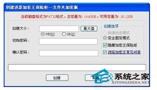 1.首先上網下載一個加密軟件,比如迅影加密王,這是一款專業的文檔加密軟件。用迅影加密王給自己的硬盤創建一個保險柜。如圖: