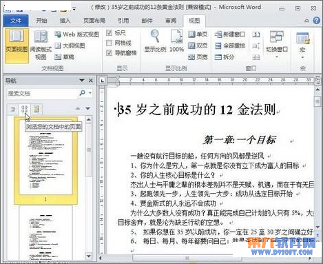 3、在打開的導(dǎo)航窗格中,單擊“瀏覽您的文檔中的頁面”按鈕可以查看到完整的Word2010文檔頁面,如圖3所示。