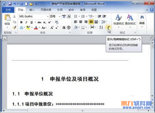 第3步,返回Word2010文檔窗口,在“開始”功能區(qū)的“段落”分組中單擊“顯示/隱藏編輯標(biāo)記”按鈕,從而在顯示和隱藏段落標(biāo)記兩種狀態(tài)間進(jìn)行切換,如圖所示。