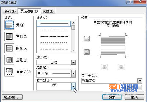 3、在“頁面邊框”選項卡中單擊“藝術型”下三角按鈕。