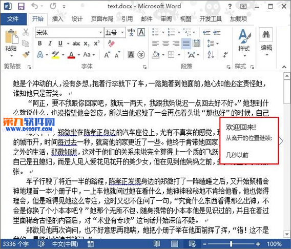 ①我們啟動Word2013,打開需要閱讀的文檔,當閱讀完畢之后,在指定位置鍵入一個空格,然后按下Delete鍵刪除,這樣相當于是沒有作任何更改。