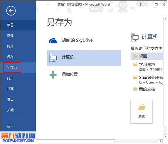 ②保存文檔,單擊文件--另存為,選擇好路徑,將文檔保存。