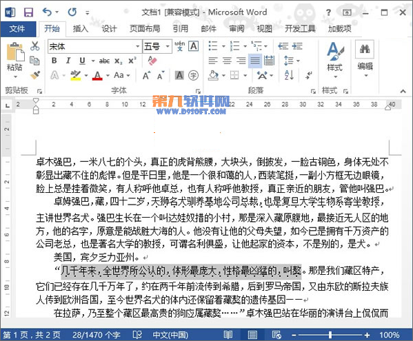 1、我們啟動Word2013,打開一份文檔,要對鼠標選中的語句進行著重標記,鼠標選中此句,單擊開始選項卡下字體功能組里面的按鈕,下圖紅色標記處。
