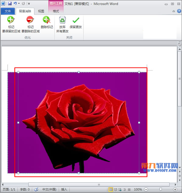 第二步:如圖所示,紫色區(qū)域代表要刪除的背景區(qū)域。可以看到圖片上有一個選擇修改圖片范圍的方框,選中該方框通過拖動邊框上的點(diǎn)來框選需要對圖片進(jìn)行修改的區(qū)域。