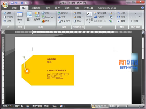 7、這樣客戶聯系卡就插入到Word文檔中了,以上就是文檔部件功能的使用方法。