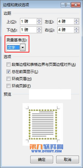 4、邊框和底紋選項界面,我們將測量基準設置為文字,單擊確定按鈕。